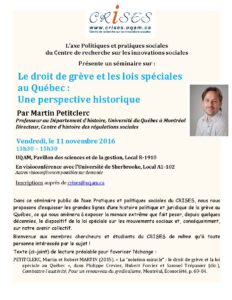 L’axe Politiques et pratiques sociales du Centre de recherche sur les innovations sociales présente un séminaire sur Le droit de grève et les lois spéciales au Québec : Une perspective historique.